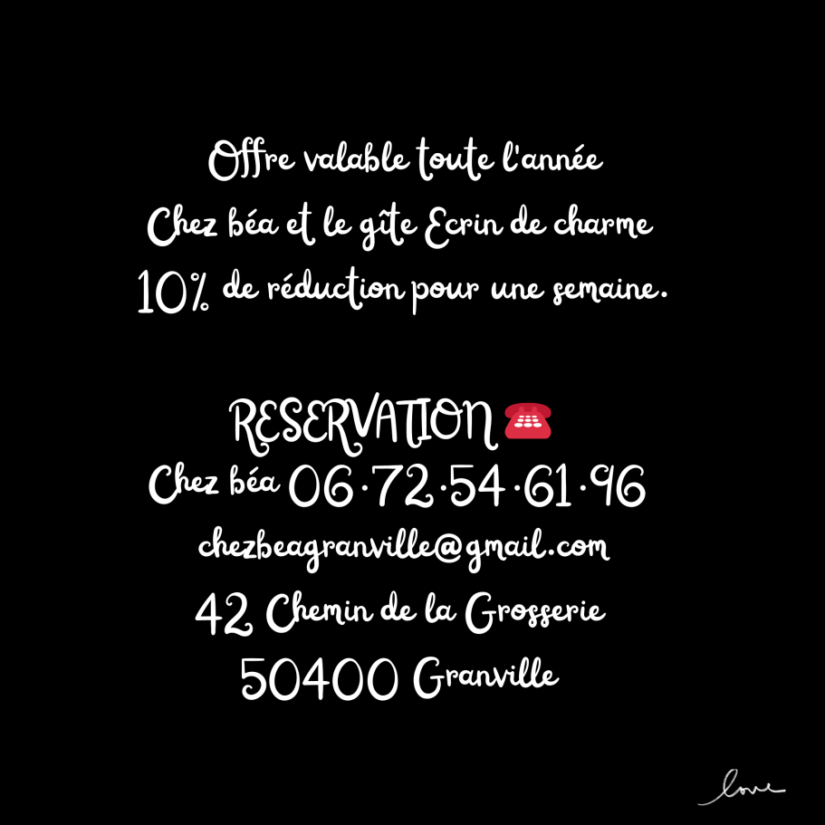 📞au 06 12 54 61 96 ou chezbeagranville@gmail.com